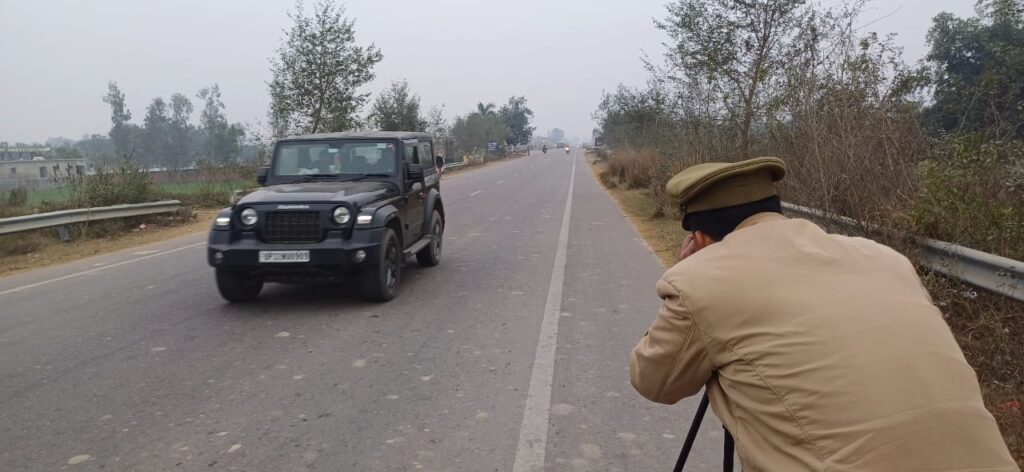 सड़क सुरक्षा माह जनवरी 2025 के दृष्टिगत ओवर स्पीडिंग के कारण हो रही सड़क दुर्घटनाओं में कमी लाने हेतु महराजगंज फरेंदा राष्ट्रीय राजमार्ग 730 ITM चौकी के पास यातायात पुलिस द्वारा स्पीड राडार गन लगाकर तेज गति से वाहन चलाने