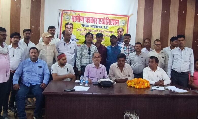 महराजगंज। जिले के सदर ब्लॉक सभागार में रविवार को ग्रामीण पत्रकार एसोसिएशन की एक महत्वपूर्ण बैठक आयोजित की गई, जिसमें बड़ी संख्या में पत्रकारों ने भाग लिया। बैठक में संगठन की मजबूती, पत्रकारों की सुरक्षा और उनके अधिकारों को लेकर विस्तृत चर्चा की गई।