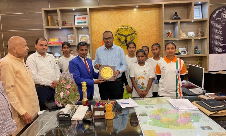 महराजगंज पकड़ी बिशुनपुर:दुर्गावती देवी इंटरमीडिएट कॉलेज के तमो मार्शल आर्ट खिलाड़ीयों का एक प्रतिनिधिमंडल अपने टीम कोचपंचम डिग्री ब्लैक बेल्ट राजेंद्र विश्वकर्मा के दिशा निर्देश में डीएम संतोष कुमार शर्मा से मुलाकात किया। डीएम संतोष कुमार शर्मा ने प्रशिक्षक राजेंद्र विश्वकर्मा को बीते 21 सितंबर को कोलकाता में हाल आप फेम से सम्मानित ब्लैक बेल्ट सिहान राजेंद्र विश्वकर्मा को जनपद आगमन पर उन्हें सम्मानित किया। उनके साथ उपस्थित सभी मार्शल आर्ट के खिलाड़ियों प्रोत्साहित किया तथा उनसे बातचीत के दौरान कहा कि मार्शल आर्ट सीखने से स्वयं की सुरक्षा की जा सकती है, मिशन शक्ति के बारे में भी खिलाड़ियों को बताकर उन्हें जागरूक किया।बीते 21 सितंबर को कोलकाता के प्रेस क्लब में आयोजित खेल रत्न अवॉर्ड समारोह में उपस्थित जनपद महाराजगंज के तमो मार्शल आर्ट के प्रशिक्षक ब्लैक बेल्ट सिहान राजेंद्र विश्वकर्मा को हाल आफ फेम अवार्ड देकर सम्मानित किया गया ।जनपद आगमन पर दुर्गावती देवी इंटर कॉलेज के द्वारा संचालित तमो मार्शल आर्ट के खिलाड़ीयों व विद्यालय परिवार में उन्हें फूल माला पहनाकर सम्मानित किया।इस अवसर पर विद्यालय के प्रधानाचार्य करुणामणि पटेल, उप प्रधानाचार्य राजेश कुमार तिवारी, कार्यालय अधीक्षक रमेश चंद पटेल,प्रभारी मनमीत पटेल, राहुल जायसवाल, विमलेश पांडे, राजेंद्र कुमार, विश्वजीत गिरी, नेहा पटेल,उषा सिंह, नेहा मद्धेशिया, शिल्पा वर्मा आदि शिक्षक शिक्षिकाएं उपस्थित रहे।